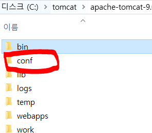 설치된 톰캣 파일에서 conf파일을 클릭!