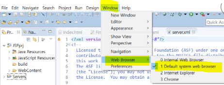 +추가로 여기서 실행시키면 이클립스 내의 브라우저가 열리면서 실행되는데 자신이 기본으로 사용하는 브라우저로 실행 예를 들면 크롬 등으로 열게 하고 싶다면, 아래와 같이 설정해주면 된다.
