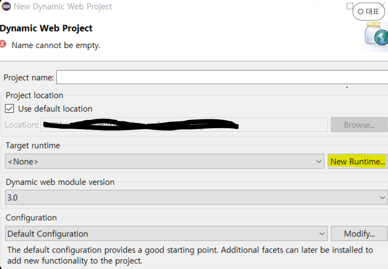 javaEE가 설치된 환경이라면 new -> dynamic web project를 확인할 수 있다 이걸 클릭해서 프로젝트를 생성해보자