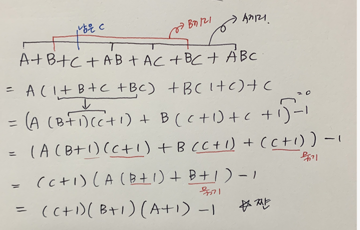 식 : (A+1)(B+1)(C+1)-1