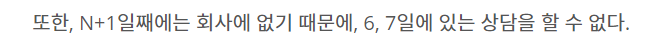 이 문제는 DP문제로 크게 어렵지는 않았지만 나의 경우 마지막 날짜인 n일까지 일할 수 있다는 것을 놓쳐서 시간이 좀 더 걸렸던 문제였다 ㅎ,,,
