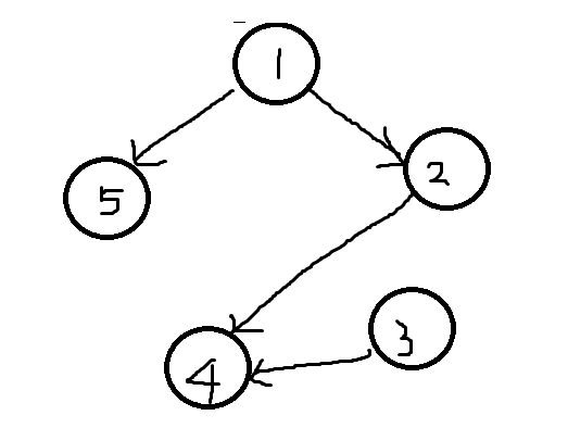 -예제의 그래프를 그려보면 이렇게 된다. 1번은 5번과 2번 앞에 있어야 하고 4번은 2번과 3번 뒤에 있어야 한다.
